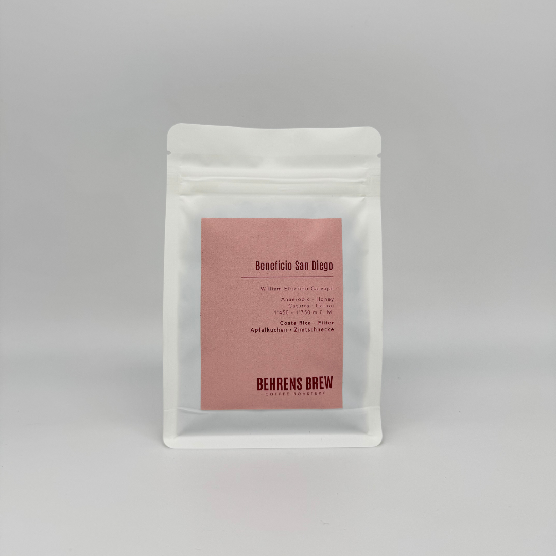William Elizondo Carvajal ist einer von vielen Kleinfarmern in dieser Region, die auf durchschnittlich nur 2–3 Hektar Land hochwertige Arabica-Varietäten anbauen. Seine Kirschen werden selektiv von Hand gepflückt und in der renommierten Mühle Beneficio San Diego verarbeitet – einer der ältesten und technisch fortschrittlichsten Aufbereitungsstationen des Landes.